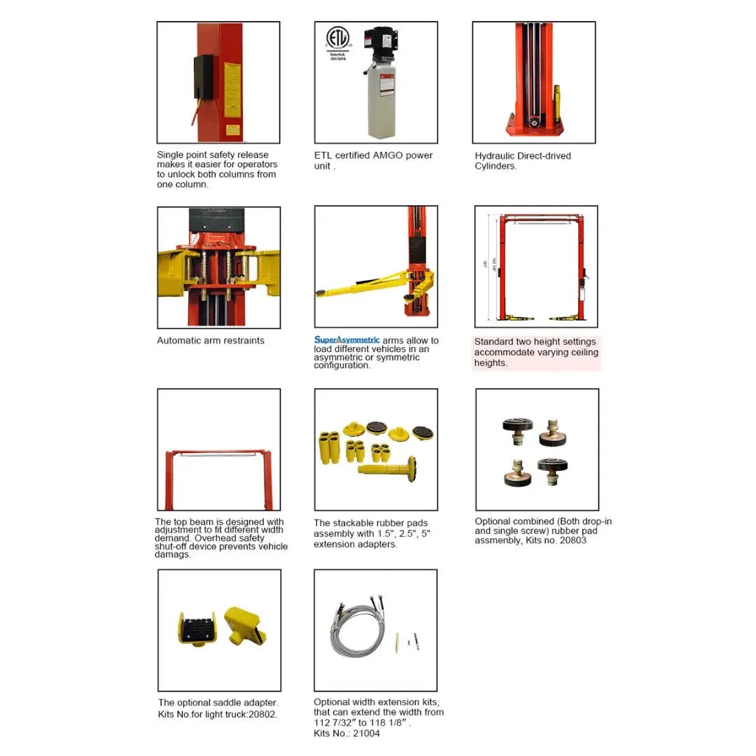 Elevate your automotive service offerings with the cutting-edge AMGO OHX-10H 2 Post Car Lift, a remarkable blend of innovation, strength, and safety. Crafted for the discerning professional who demands reliability and versatility in their workshop, the OHX-10H is a standout product available exclusively at Mechanic Superstore. Its robust design and advanced features ensure it meets the high standards expected in today’s automotive service industry.