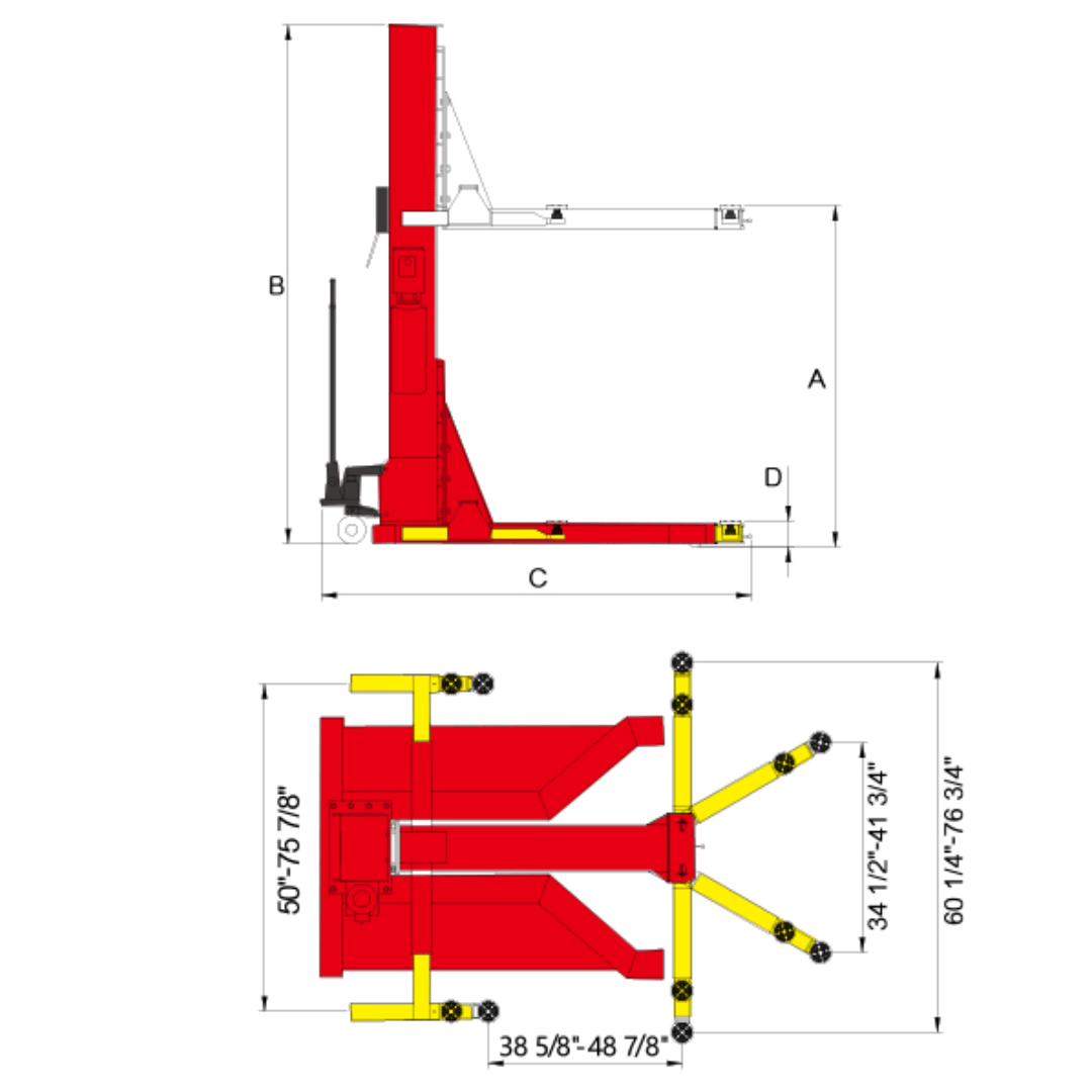 The AMGO SML-7 is engineered for performance and convenience, offering a maximum lifting height of 77 3/4 inches (1976 mm) and a sleek minimum pad height of just 4 3/8 inches (110 mm). This range allows for effortless under-vehicle access and can accommodate a wide array of vehicle types and sizes. The lift’s compact footprint, with an overall width of 90 3/8 inches (2295 mm), ensures that it fits easily into most workshop spaces without sacrificing valuable floor area.