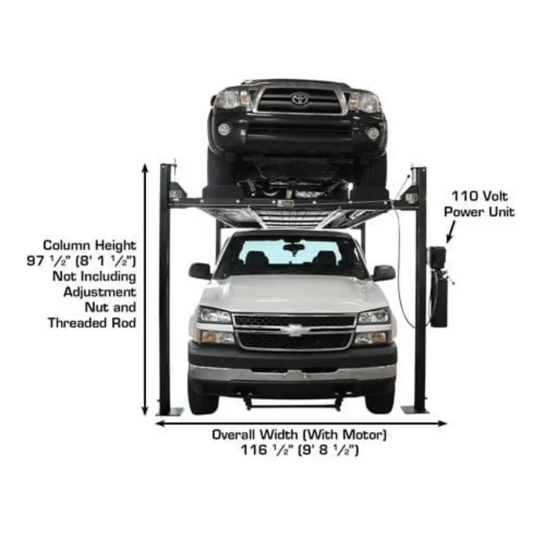 The Atlas PRO8000EXT-L 4 Post Car Lift is a top-of-the-line solution for automotive professionals and enthusiasts seeking unmatched lifting capacity, durability, and flexibility in their workspace. Designed to accommodate a wide range of vehicles with its 8,000 lbs capacity, the PRO8000EXT-L is perfect for conducting repairs, maintenance, or simply maximizing storage space in your garage.